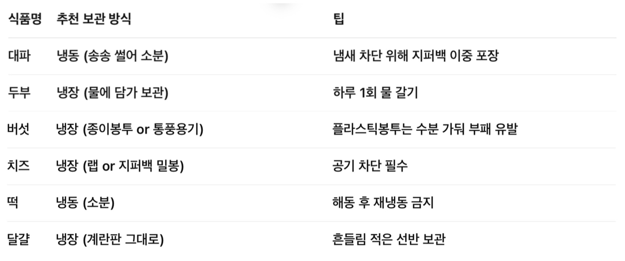 ✅ 자주 먹는 식재료별 추천 보관법 요약